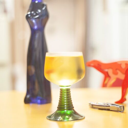 衝動でレーマーグラス購入。 ドイツの伝統グラス。 レーマーはローマの意味。2000年前にローマ人がドイツに持ち込んだガラスのクズを溶かして作った事が名前の由来とされている。 ステムが緑なのは白ワインが綺麗にみえるためのもの。 太く凹凸があるのは食…